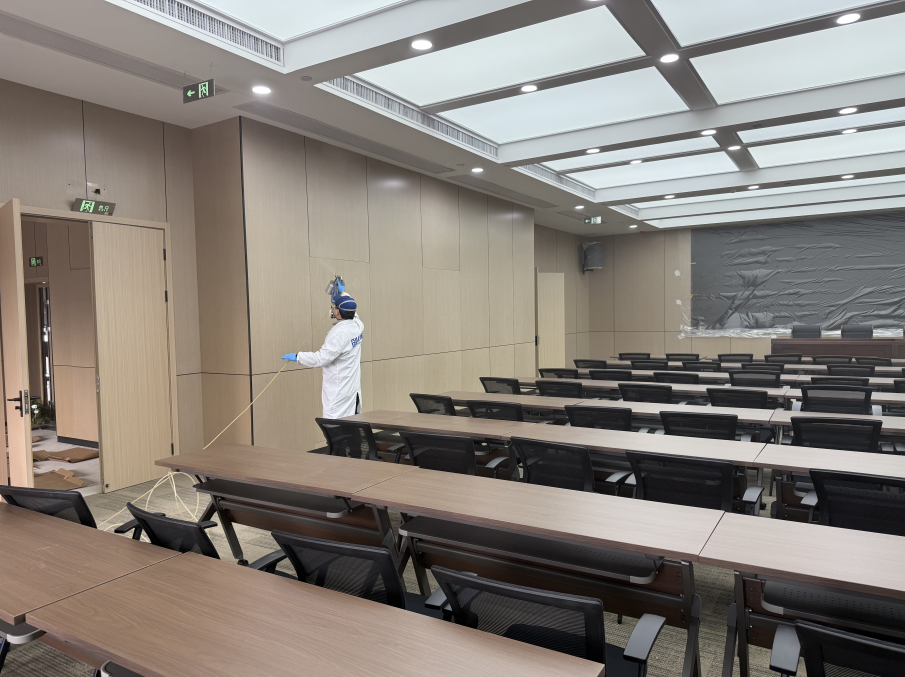 我們團(tuán)隊(duì)嚴(yán)格遵循雙國(guó)標(biāo),針對(duì)政務(wù)空間高要求定制方案:前期精準(zhǔn)勘測(cè)污染源、科學(xué)布點(diǎn)初測(cè);施工階段全程成品保護(hù),對(duì)現(xiàn)場(chǎng)設(shè)備、資料等進(jìn)行全覆蓋成品保護(hù),再采用靶向分解劑+光觸媒復(fù)合技術(shù),針對(duì)不同污染源實(shí)施差異化治理——對(duì)辦公家具、服務(wù)柜臺(tái)等重點(diǎn)部位高壓霧化噴涂靶向分解劑,深度滲透板材內(nèi)部分解結(jié)合態(tài)甲醛;對(duì)墻面、地面縫隙等區(qū)域精準(zhǔn)補(bǔ)噴,最后全區(qū)域噴涂光觸媒形成長(zhǎng)效防護(hù)膜,持續(xù)分解游離甲醛。整個(gè)施工過(guò)程無(wú)刺激性氣味,安全無(wú)擾。我們的團(tuán)隊(duì)在規(guī)定的時(shí)間內(nèi)圓滿(mǎn)完成,受到了醫(yī)保中心的認(rèn)可和高度贊揚(yáng)!