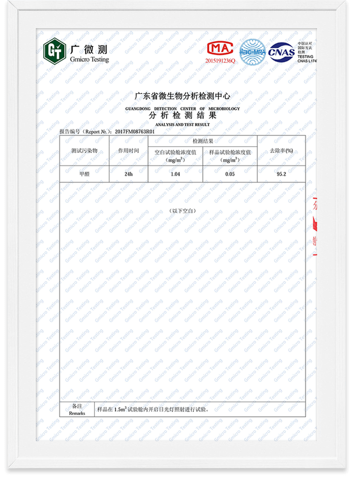 除醛精靈甲醛去除率檢測(cè)報(bào)告