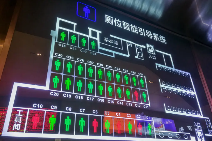 智能廁所配備紅色綠色有人無(wú)人燈,通過(guò)傳感器監(jiān)測(cè)實(shí)時(shí)人流信息,能夠自動(dòng)控制廁所內(nèi)的清潔供應(yīng)。例如:廁所內(nèi)有人時(shí)供應(yīng)電、紙巾、水等資源,節(jié)約資源的同時(shí)也保證了衛(wèi)生。
